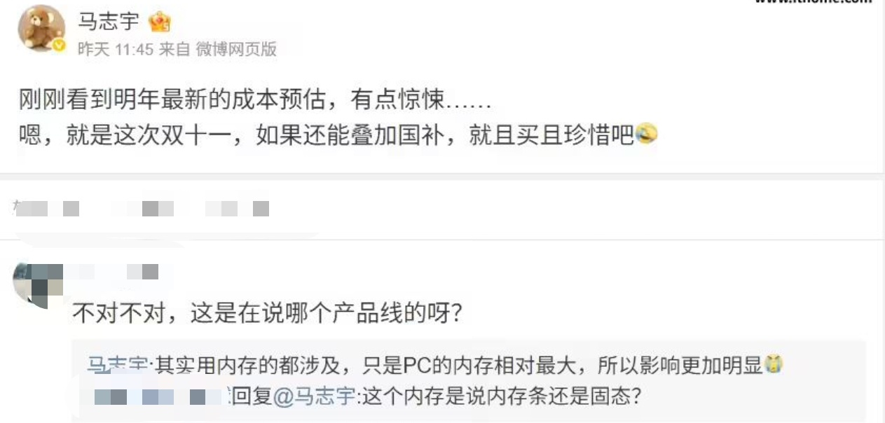 小米通讯技术有限公司产品行销总监马志宇近日在社交媒体发文称,看到公司对2026年的最新成本预估后感觉“有点惊悚”。他表示所有使用内存的产品都无法避免这次影响,而PC由于内存需求最大,受到的影响将尤为明显。