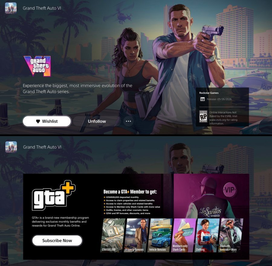 《GTA6》PS商店頁面更新,新增了GTA+訂閱服務