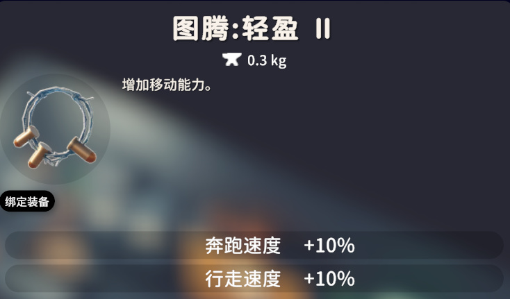 轻盈图腾一共有三个等级,效果依次是:轻盈Ⅰ,奔跑和行走速度 +7%;轻盈Ⅱ,奔跑和行走速度 +10%;轻盈Ⅲ:奔跑和行走速度 +15% 持续扣血(每3s 扣1点HP)。