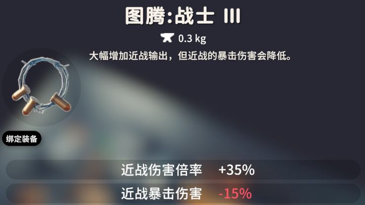 战士图腾一共有三个等级,效果依次是:战士Ⅰ,近战伤害倍率 +15%;战士Ⅱ,近战伤害倍率 +25%;战士Ⅲ:近战伤害倍率 +35% 近战暴击伤害 -15%。