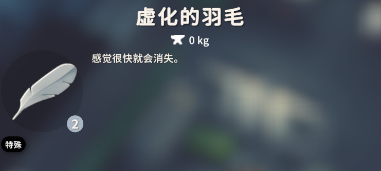 小二个人还是建议平时打鸭子尽量把虚化的羽毛都带回来,毕竟作为特殊道具,他没有重量,一般一把就只占1-2个格子。