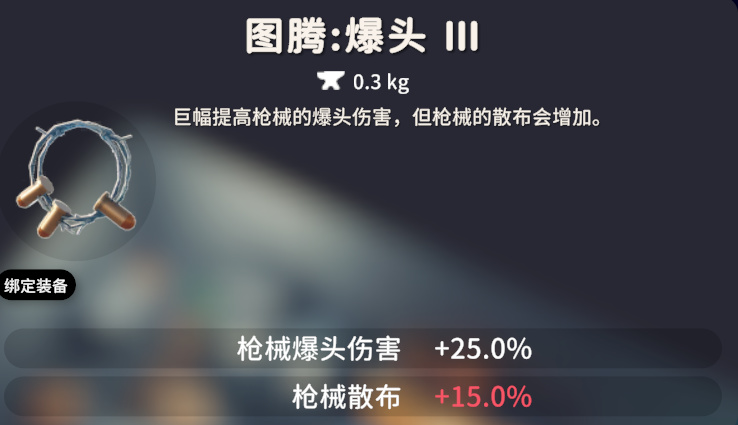 爆头图腾一共有三个等级,效果依次是:爆头Ⅰ,爆头伤害 +10%;爆头Ⅱ,爆头伤害 +15%;爆头Ⅲ:爆头伤害 +25% 枪械散布 +15%。