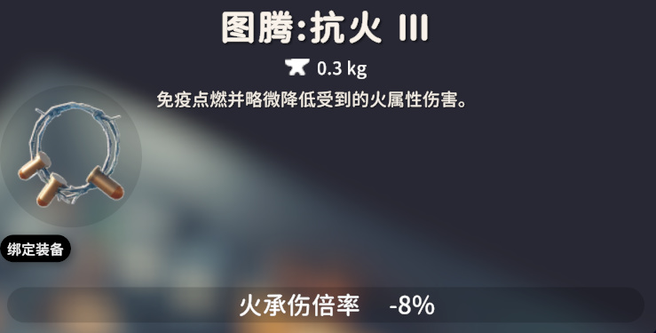 这三个同属于属性抗性提升图腾,描述都是一模一样,只是换了属性而已。一共有三个等级,效果依次是:抗火、电、毒Ⅰ,该属性承伤倍率减少 12%;抗火、电、毒Ⅱ,免疫该种属性伤害; 抗火、电、毒Ⅲ:免疫该种属性伤害的同时,降低对应属性伤害8%。