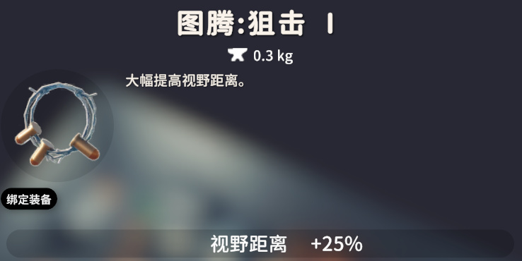 狙击图腾一共有三个等级,效果依次是:狙击Ⅰ,视野距离 +25%;狙击Ⅱ,枪械射程系数 +25%;狙击Ⅲ:枪械射程系数 +30% 视野距离 +30% 移动能力 -10%。