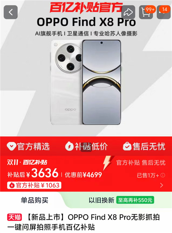 所以托尼想了一下,咱们还是看向过去的老机型吧,结果就发现了 OPPO Find X8 Pro 在双十一百亿补贴后,价格居然来到了 3 千 6 ,这就有点香了。