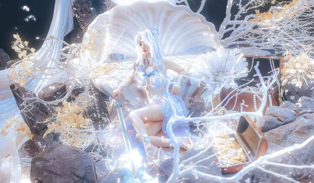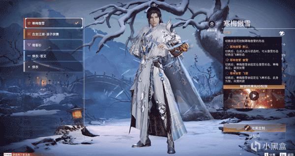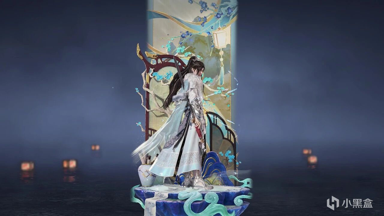 白衣俠客坐梅花樹上獨酌,右臂鎧甲有梅花延伸其上,周身寒冰般的飛刀展示他絕塵的實力。