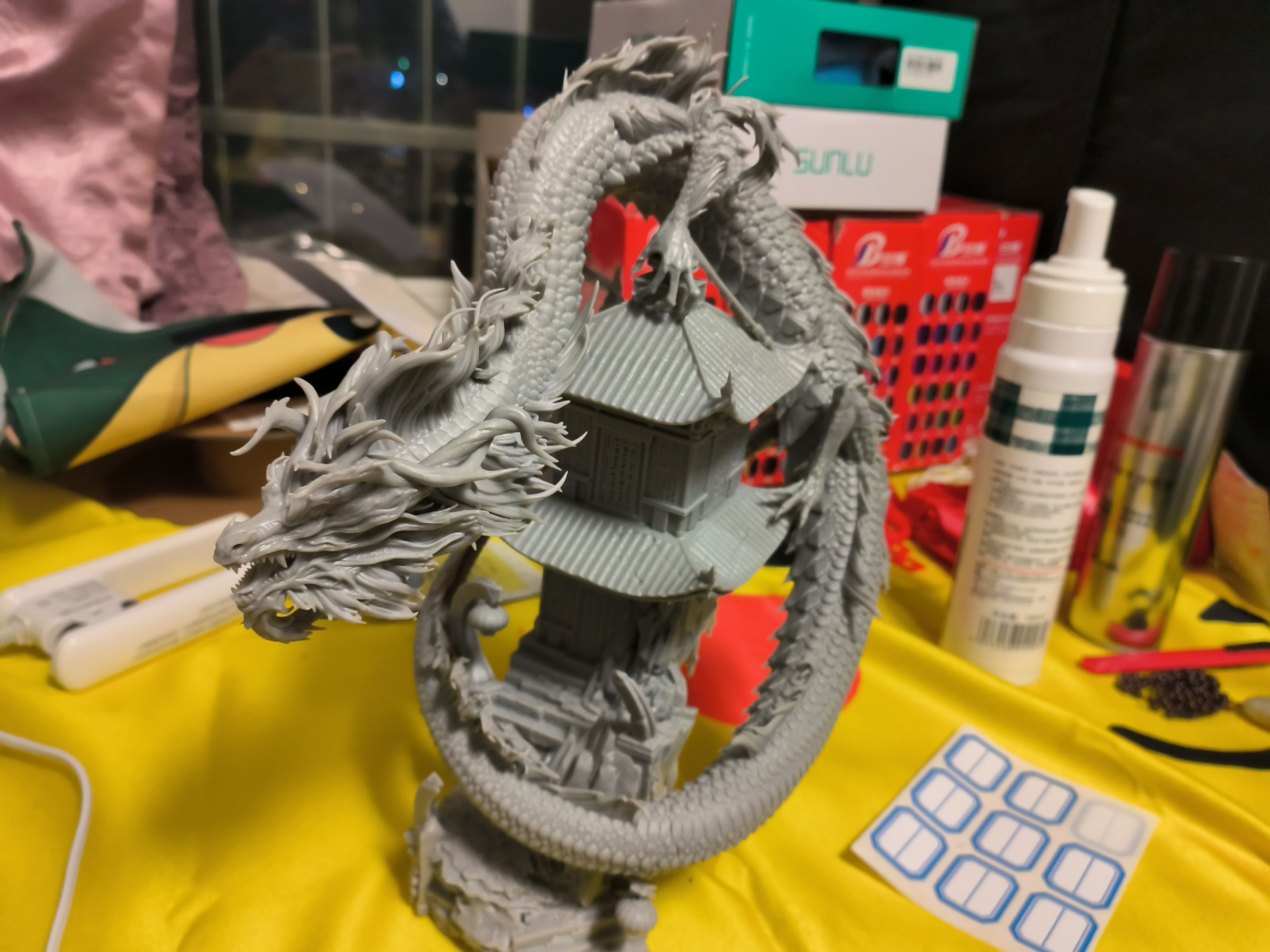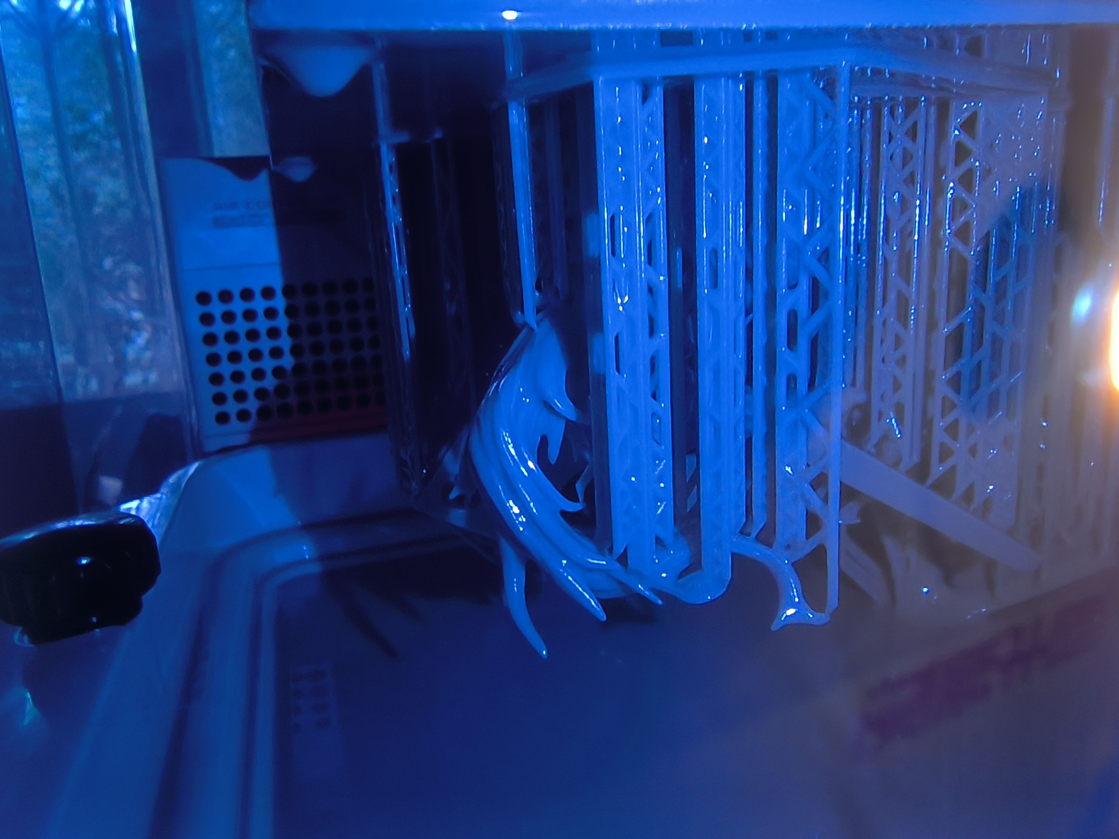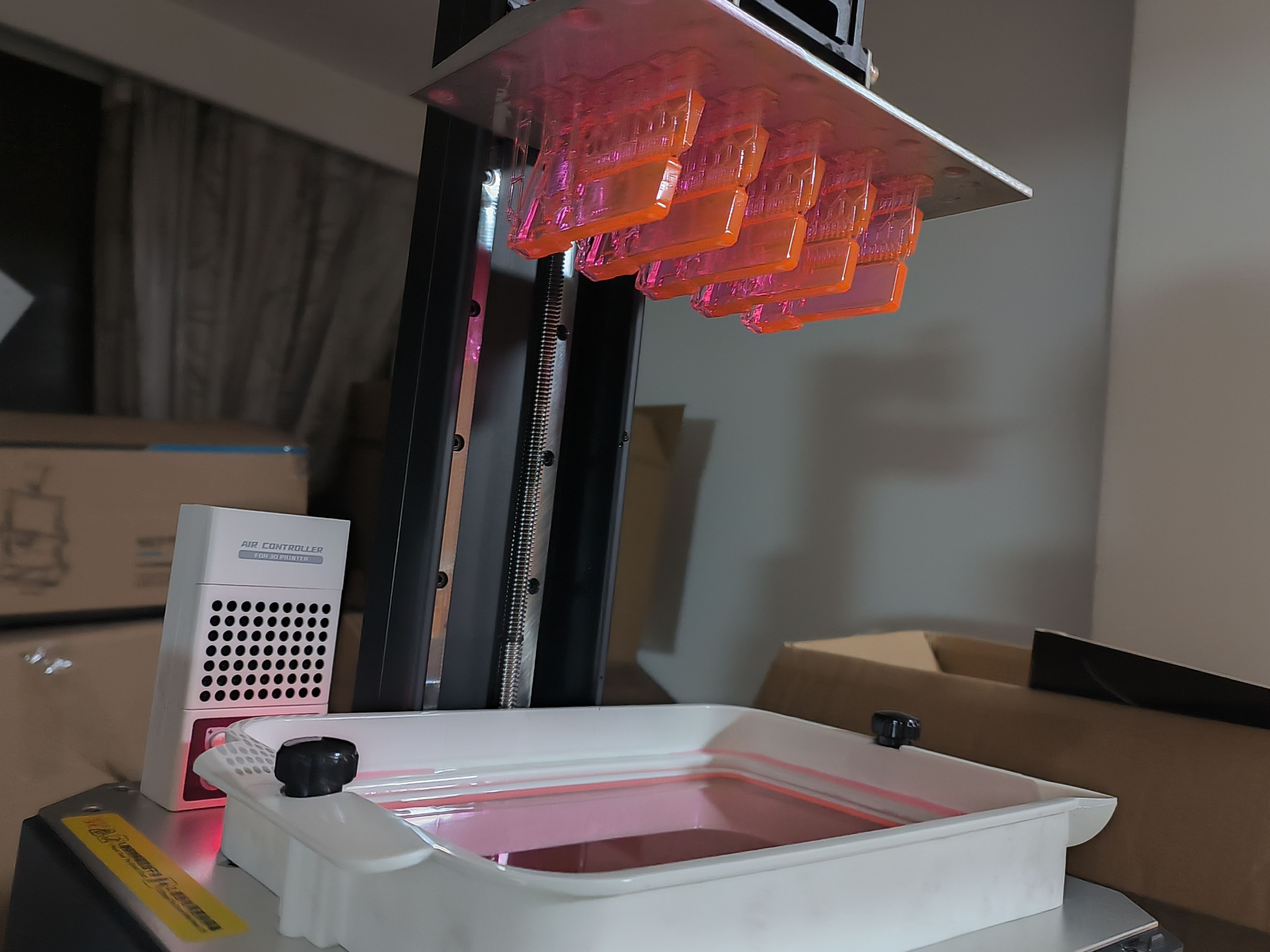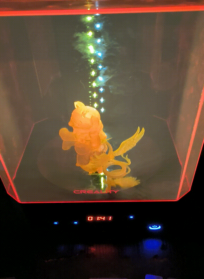 进行完清洗之后等待晾干,晾干之后就到了的固化环节,这时的模型摸上去还有一点黏黏的感觉,我们把模型放在固化器上面,这里我的是固化清洗一体机所以可以很方便的解决两个问题。