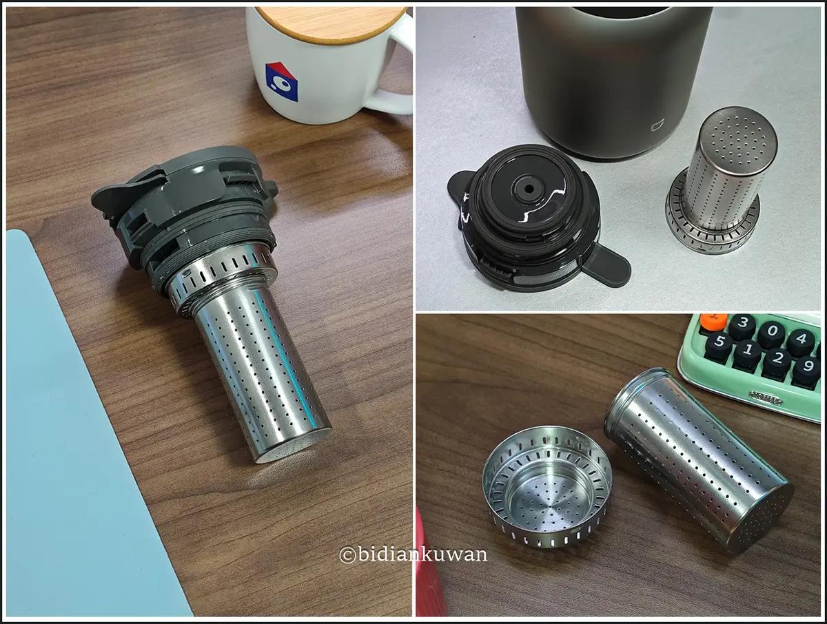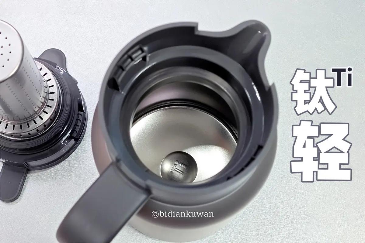 它不但采用了内胆与外壳均为纯度>99%的双层纯钛壶体,而且它还设计了一个可以自由拆卸的纯钛茶仓,外壳、内胆和茶仓都是纯钛,用料之扎实肉眼可见。