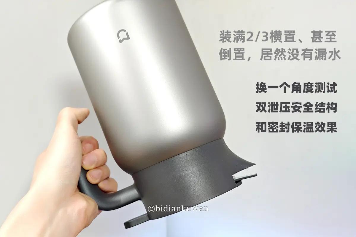 不过我要提醒各位,钛保温壶不可以盛装碳酸饮料,主要是因为12小时保温保冷密封设计,密封性真的太好了,碳酸饮料中的二氧化碳出不来,壶内气压过大就会有安全隐患。这一点也体现在产品说明书中,还请大家留意。