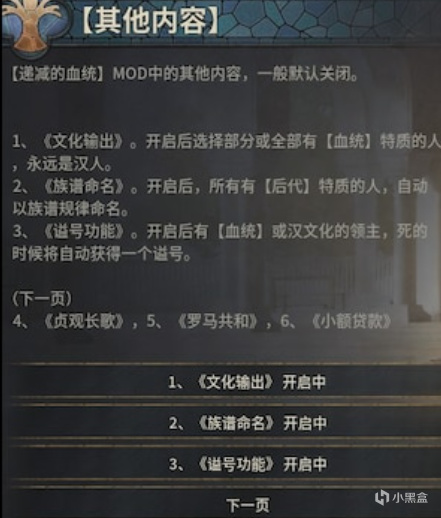 1、《文化輸出》:默認關閉 (我喜歡把漢文化傳遍世界,所以就藉助【血統】的力量)