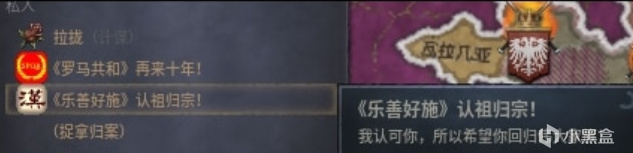 7、《樂善好施》:默認關閉 (其他零零星星的有趣功能就放在這裏,比如隨時獨立、祈禱痊癒、獲得公爵伯爵宣稱、爲漢文化增加北府兵和玄甲軍、認祖歸宗)