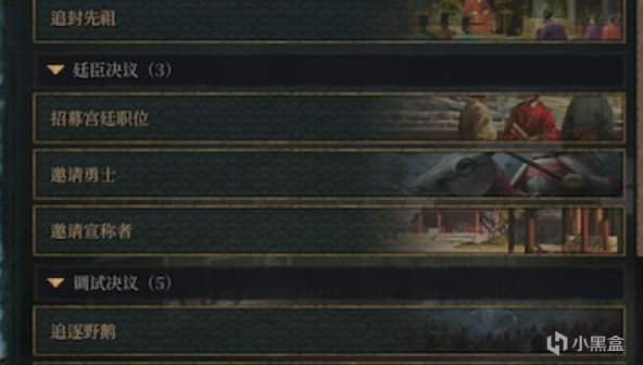 * “免除朝貢”可以直接使用了——不會有皇恩限制,不會再有停戰期,但會有大量額外消耗 * 爲天子添加移動中國霸權首都的決議——將自己的首都設置爲霸權法理首都(CK3原版的設置法理首都對霸權無效) - 在治世——即開疆拓土或政通人和中: