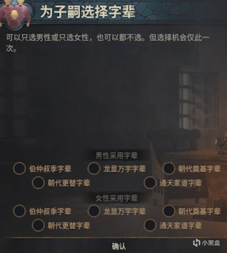 新增決策: 1.爲子嗣選擇字輩 當玩家有了代系特質後,可以採用字輩決策,讓子嗣根據字輩依據父母的代系特質自動命名。