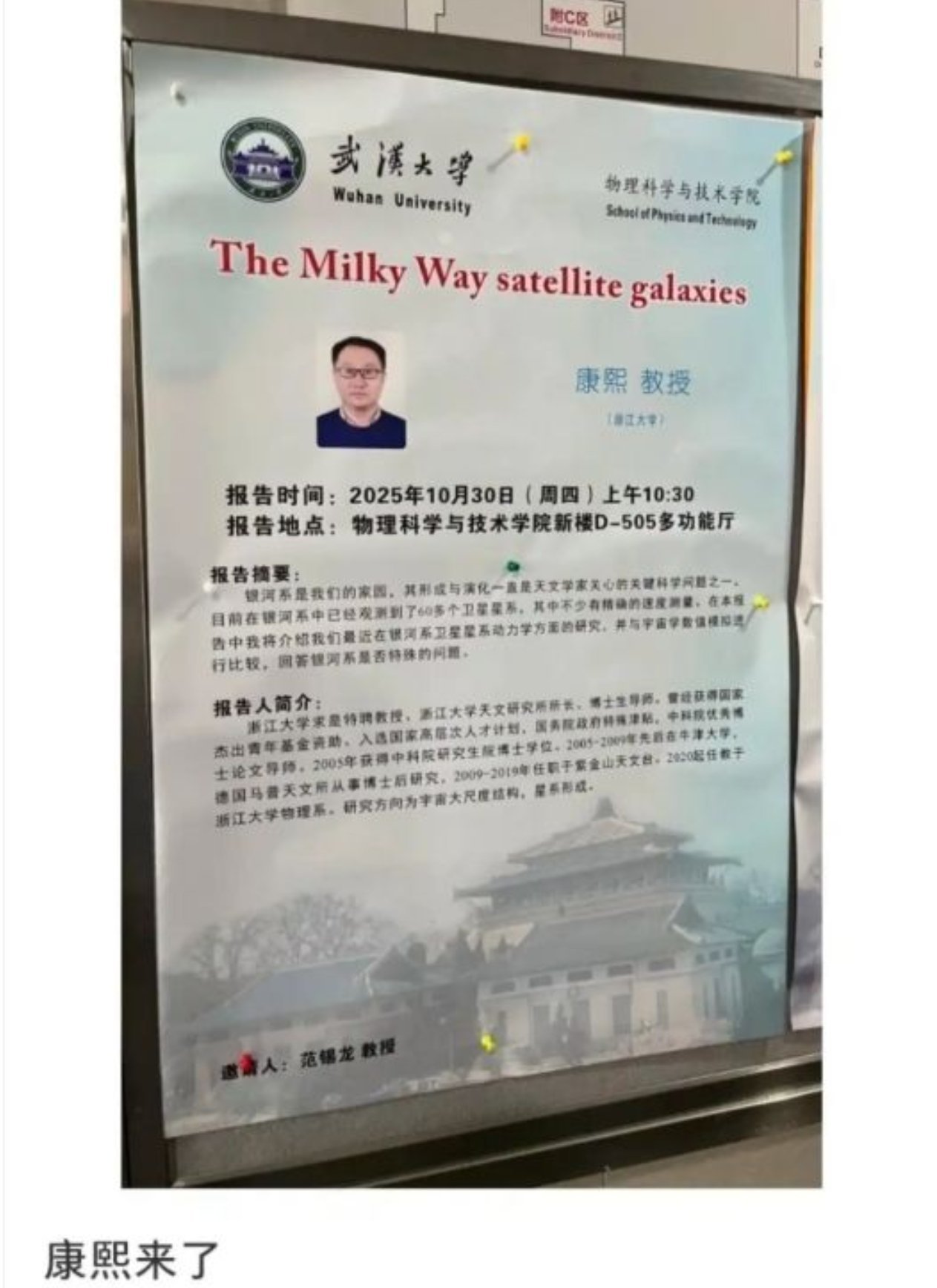 近日,武漢大學物理科學與技術學院的一場學術講座引發了廣泛關注。主講人浙江大學博導康熙教授的姓名與清朝康熙皇帝相同,使得這場專業的天文學講座獲得了超乎尋常的熱度。