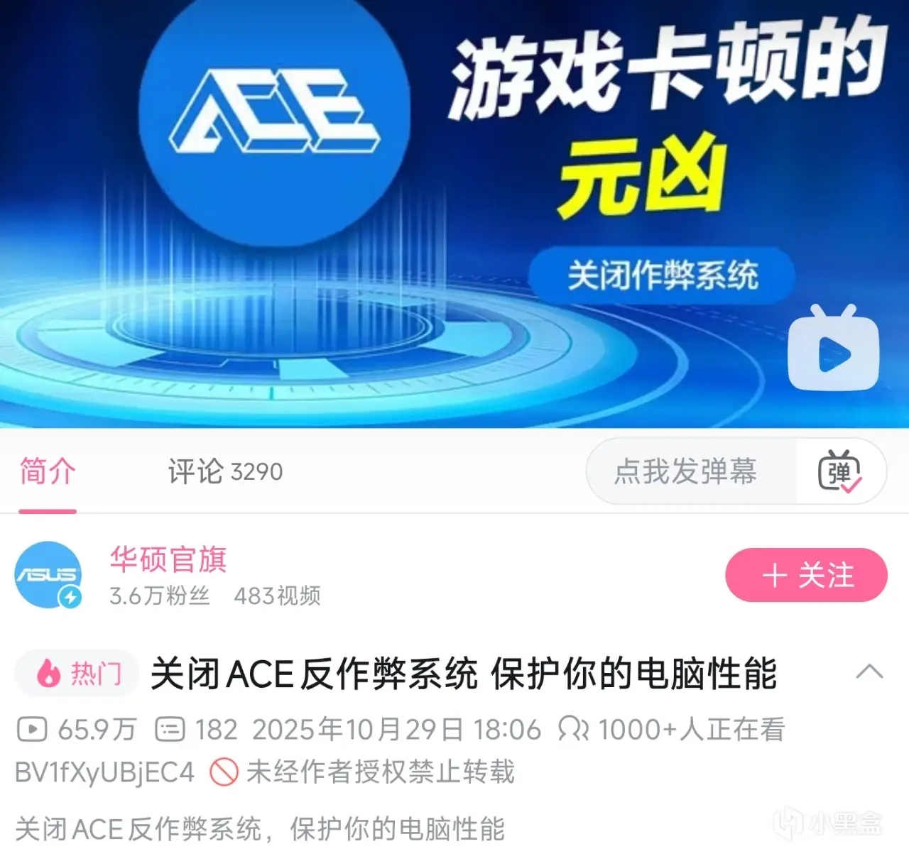 10月29日,华硕官旗的账号在B站发布了一个标题为《关闭ACE反作弊系统 保护你的电脑系统》的视频,引发舆论。