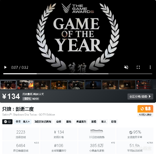 太性情了!這還說啥呢?Steam和黑盒又發力了!衆多佳作迎來史低!包括《只狼:影逝二度》、《米塔》、《幻獸帕魯(EA)》在內的多款熱門遊戲均創下歷史最低價,爲玩家提供了絕佳的入手時機。