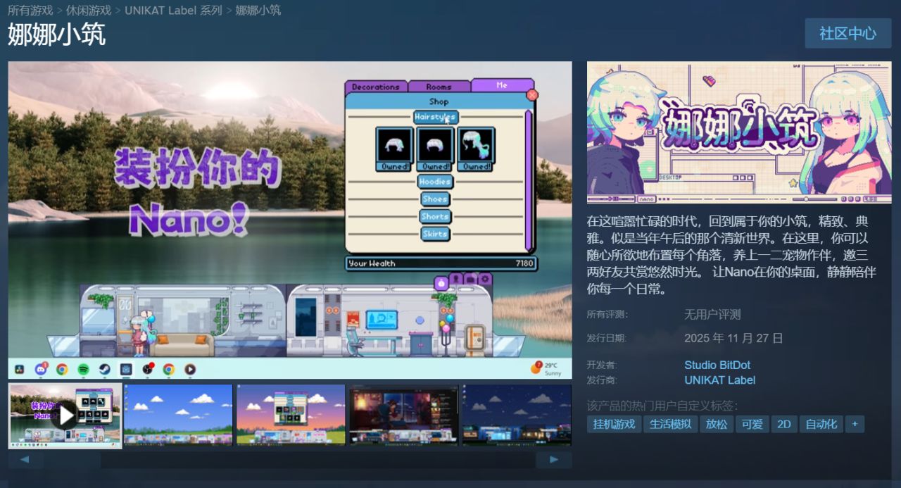《娜娜小筑》是一款充满轻松与闲适氛围的日式风格桌面放置游戏,在你工作、学习或娱乐时提供温暖的陪伴。