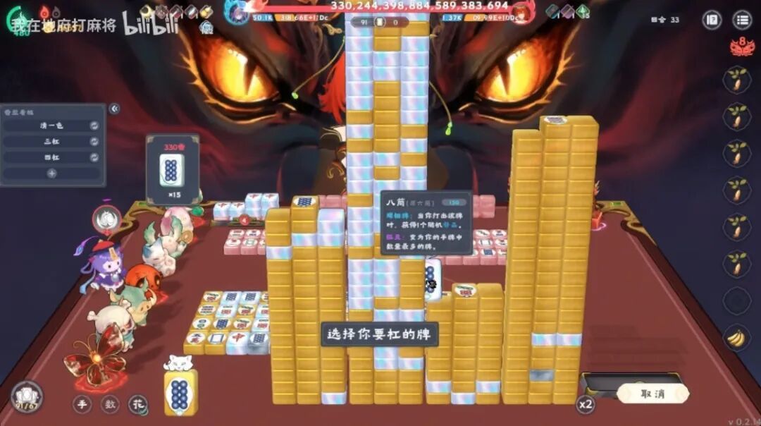 这样的演出细节不止体现到动捕上。作为一个肉鸽麻将游戏,他们也充分利用了3D游戏的特性,把肉鸽游戏“无限叠加属性”的特点具象化了出来。