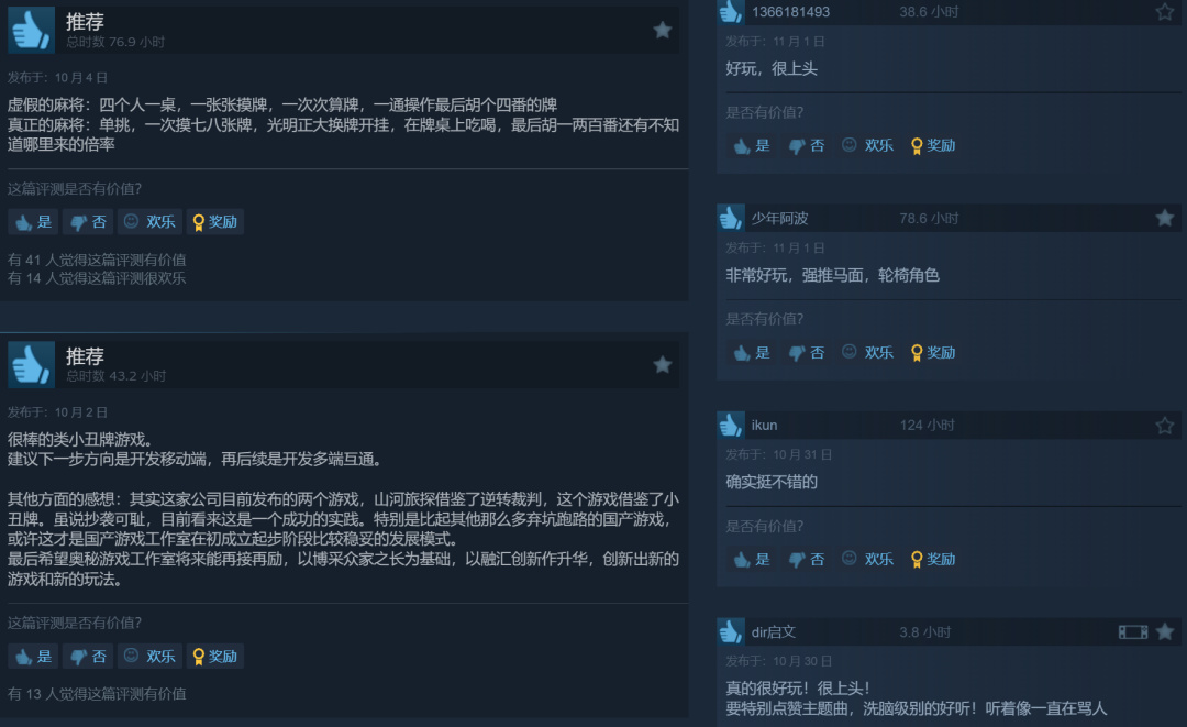 游戏发售到现在,获得了2000多条评价,好评率高达95%。你可能会觉得这是靠着“你给我看美少女我就给你好评”,但实际上大部分评价都是说得游戏好玩上头。