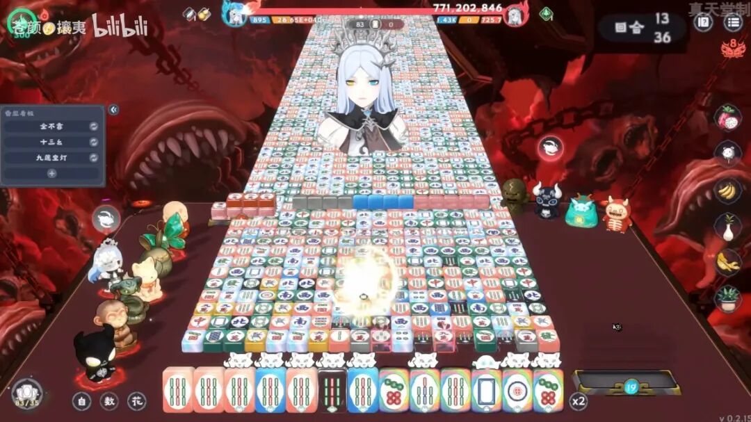 我们都知道吃牌碰牌要把打出的麻将横铺在自己面前,当一套主打吃碰的构筑把技能、遗物等“盘外招”运用到极致时,就可以在字面意义上把牌铺到屏幕之外,实现物理层面的腰斩对手;