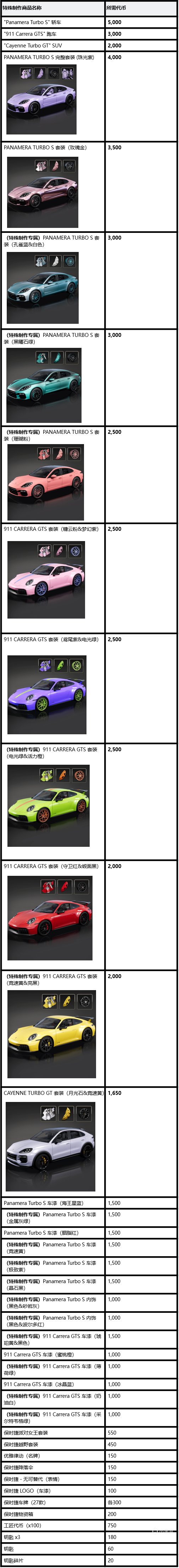包含额外赠送道具:保时捷代币(x400),保时捷典藏箱(x1)