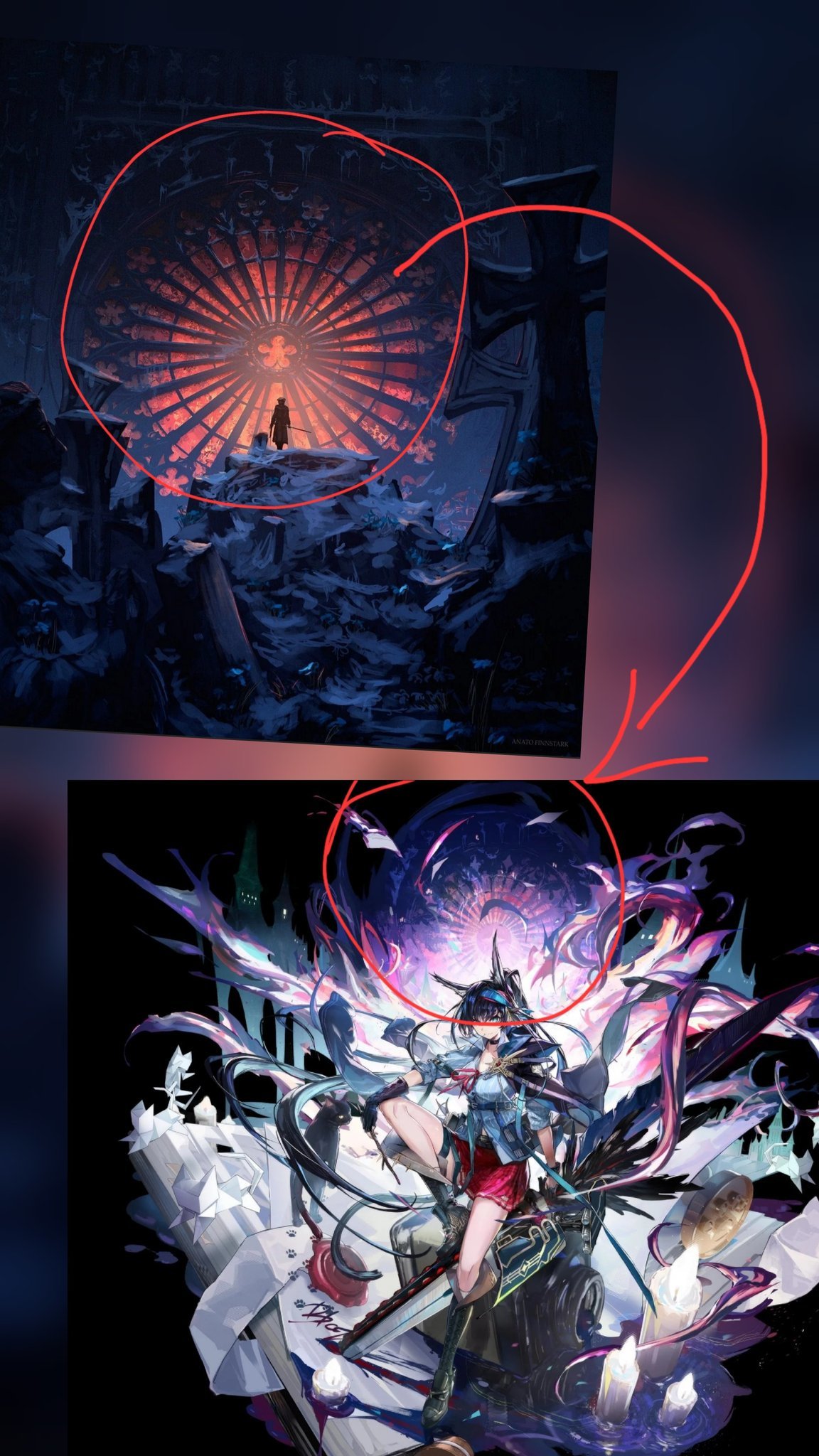 (一些网友认为,【易爆蓝焰 - 煌】这张立绘的 背景直接 贴了【Anato Finnstark】的画(贴图))