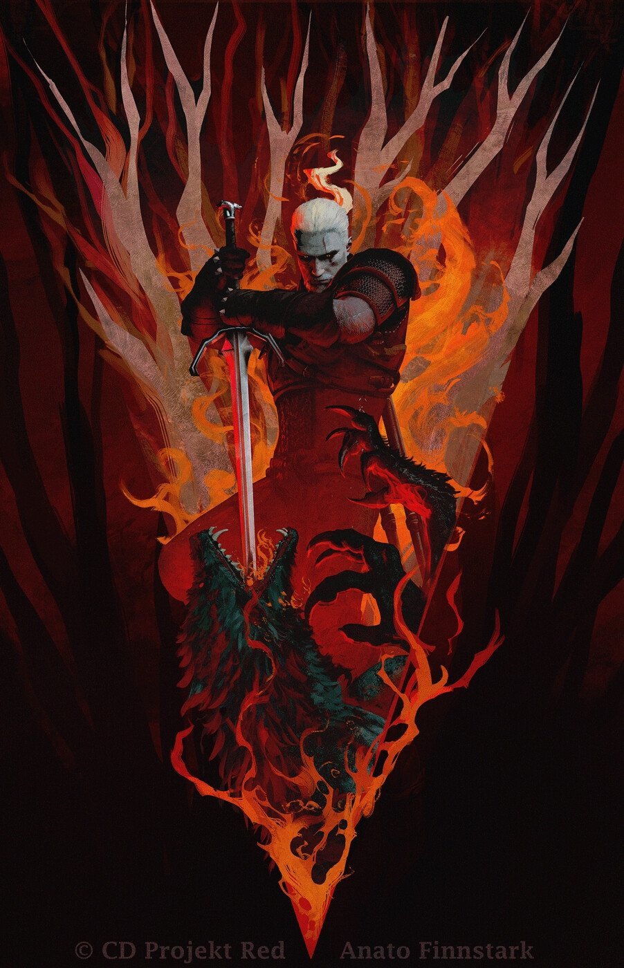 (《猎魔人与苍狼》,CDPROJEKTRED官方有推出实体艺术版画周边)