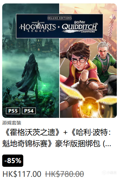 注意:霍格沃兹之遗本体位于二档库。常常打折的霍格沃兹捆绑包出现了背刺,不过这是可预料到的,仅比霍格沃兹本体史低贵了8HKD,多一个游戏尝一尝也不亏。