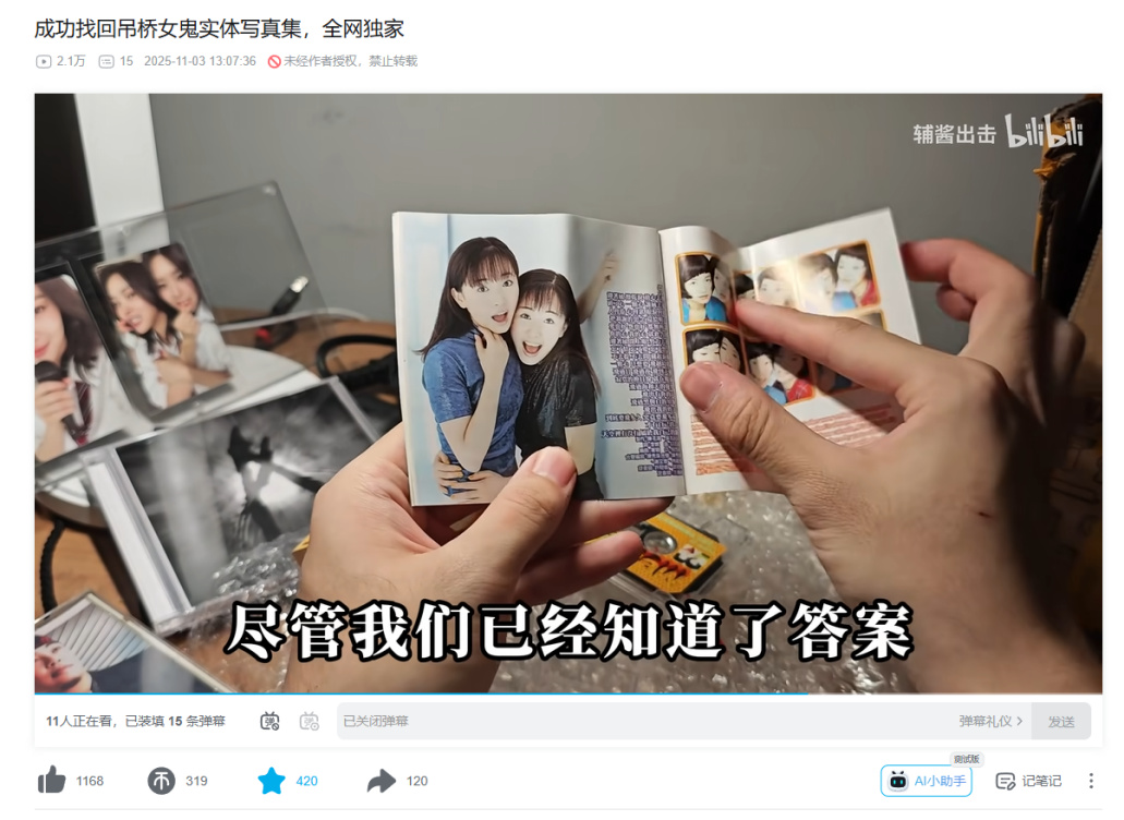 或許是此前的搜尋使其對類似照片極度敏感,也或許是平臺的大數據發力……總之,在各種巧合的因素,以及此前的積累之下,吊橋“女鬼”的真面目被揭露了——她是中國臺灣雙胞胎女子演唱組合ME2的成員,這張圖片正是來自該組合《我就是我》實體專輯中的歌詞本。