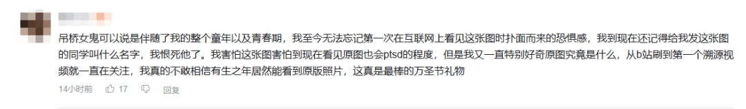 於是,從吊橋來源到鬼臉出處,有關整張圖片的主線任務被徹底完成。至於究竟是誰出於何種原因製作出這張圖,已經是件無法求證卻也無關緊要的事——正如評論區所說,完成這個主線任務,也未嘗不是一種真相重見天日後的救贖感。