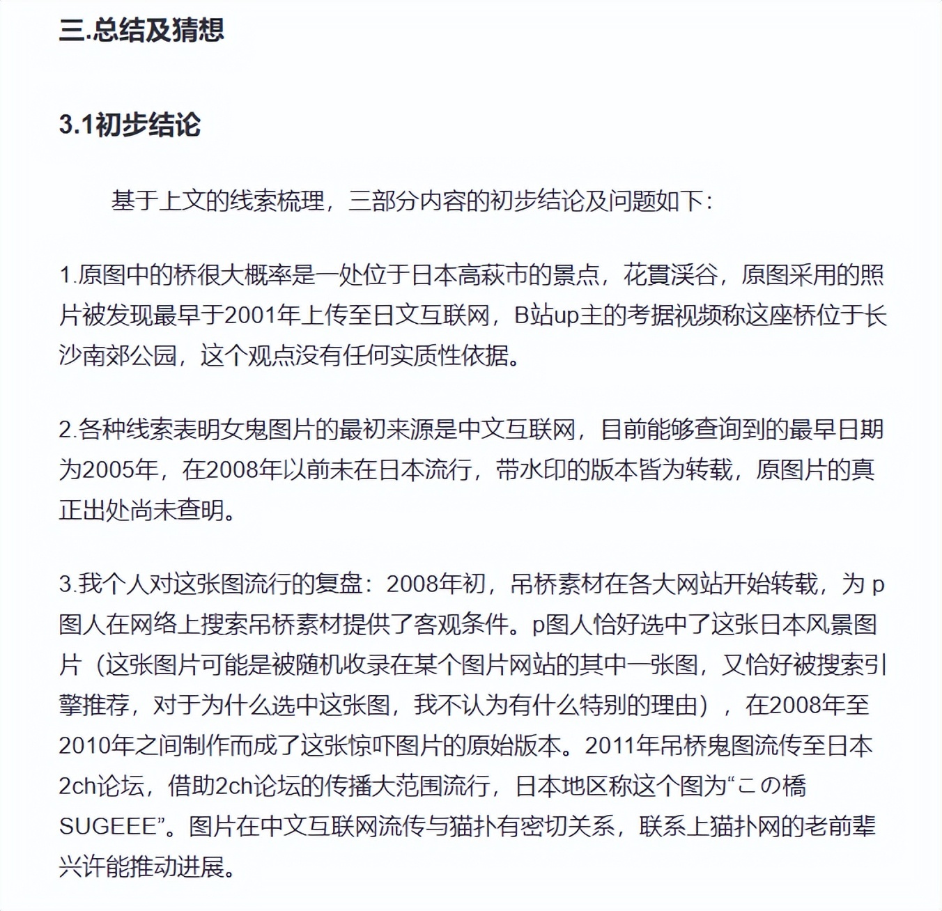 在這之後,雖然有無數網友們對此進行討論與分析,但找到的圖片仍舊與原圖有着不小的差異。對吊橋女鬼原圖的搜尋,極有可能陷入停滯的死局。