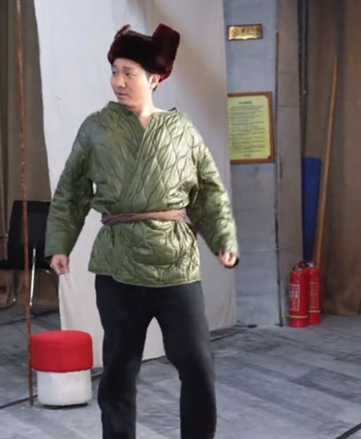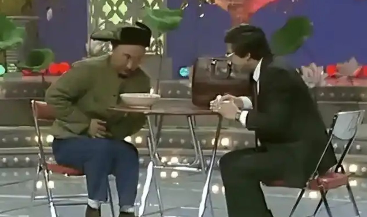 陈大愚在话剧《戏台》后台为父亲陈佩斯准备了一份特殊惊喜——将父亲经典的“吃面条”小品创新改编为“吃馄饨”。他身着与陈佩斯当年相似的服装,迈着标志性步伐登场,就连撒胡椒粉的细节都完美复刻了父亲的表演精髓。