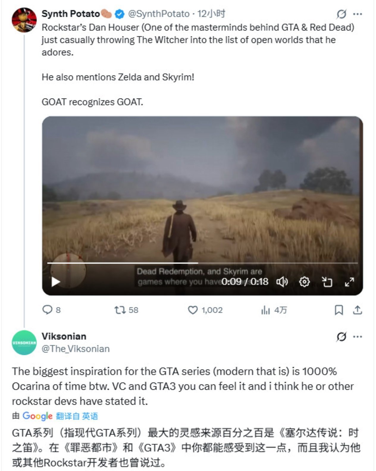 R星(Rockstar Games)聯合創始人丹·豪瑟(Dan Houser),這位打造了《GTA》和《荒野大鏢客》系列的業界傳奇,近日分享了他最欣賞的開放世界遊戲名單。除了《塞爾達傳說》和《上古卷軸5:天際》等經典外,他特別將《巫師》系列列入其中。