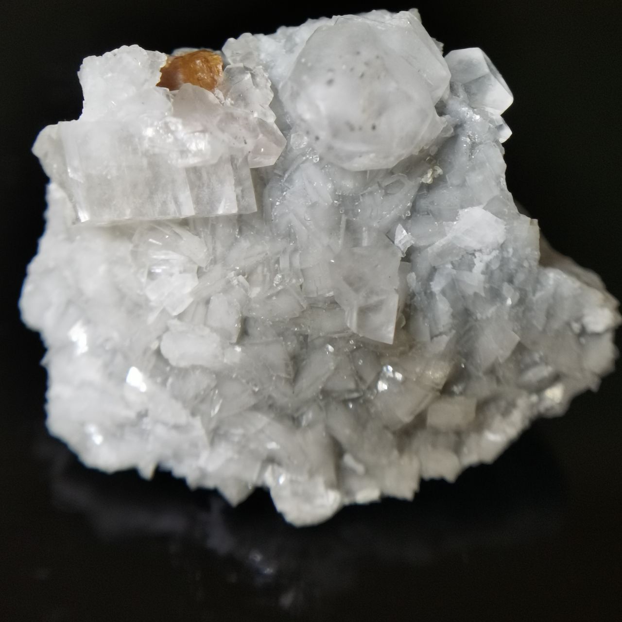 产自法国 奥克西塔尼大区 阿列日省 富瓦区 吕兹纳克镇Trimouns Talc mine的氟碳钙铈矿(橙黄色六边形晶体)共生方解石(菱面体/奔驰头透明晶体)白云石(底岩白色晶体)共生