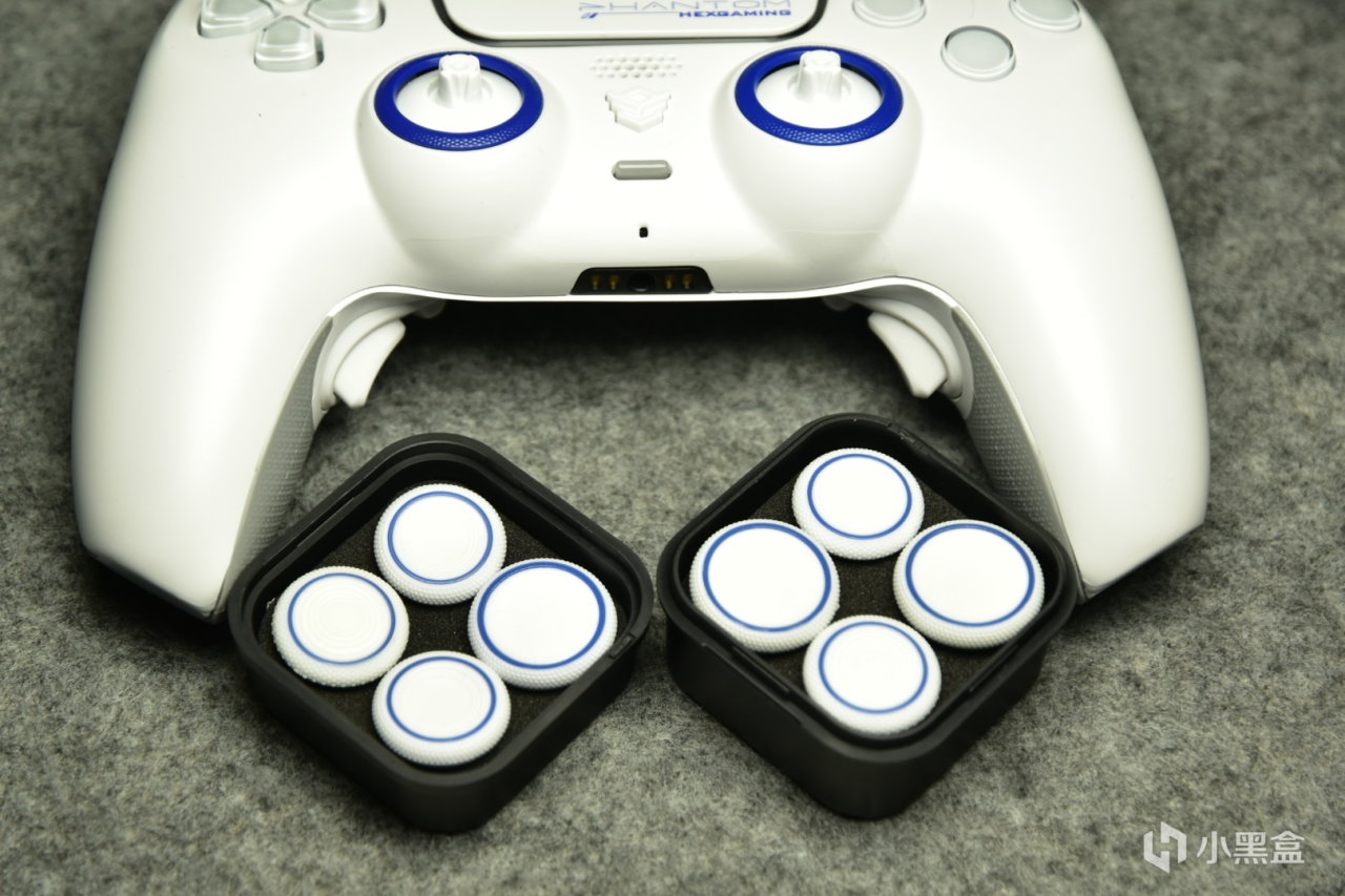 手柄提供了两种摇杆方案,霍尔和碳膜,个人是觉得霍尔摇杆寿命长所以选择了霍尔版,如果你有FPS游戏的需求,可以考虑选择碳膜摇杆。摇杆阻尼适中、手感顺滑,边缘配有耐磨环,且支持更换 —— 附赠的五种摇杆,在表面和杆壁长度上均有不同,可适配不同游戏需求。