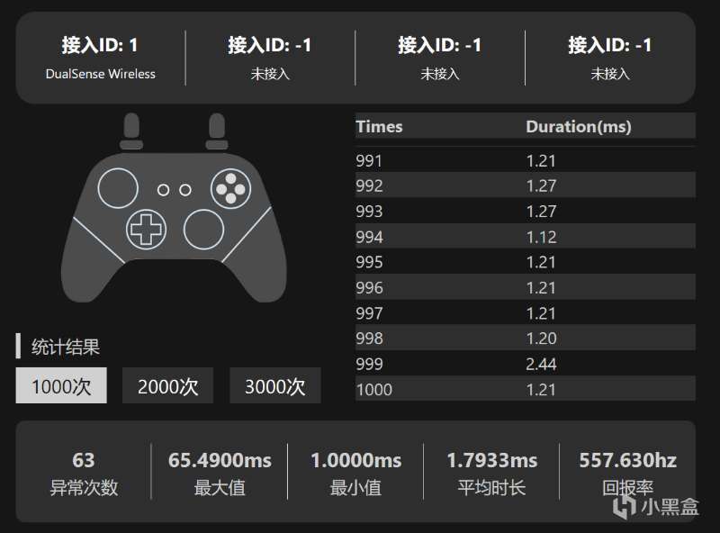 回报率方面使用蓝牙连接,测得为500Hz,使用起来非常跟手,完全可以拿来玩一些支持手柄的FPS游戏。