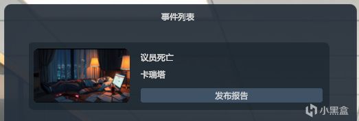 我们点击一个地图上的事件,就能够看到查看事件的界面。这就是我们的关闭军方生物实验室的地图事件。说是某国有一个废弃的军方生物实验室要关闭,该国可能迫于国际社会压力同意国际组织到场监督关闭过程。这我们的生意就来了。
