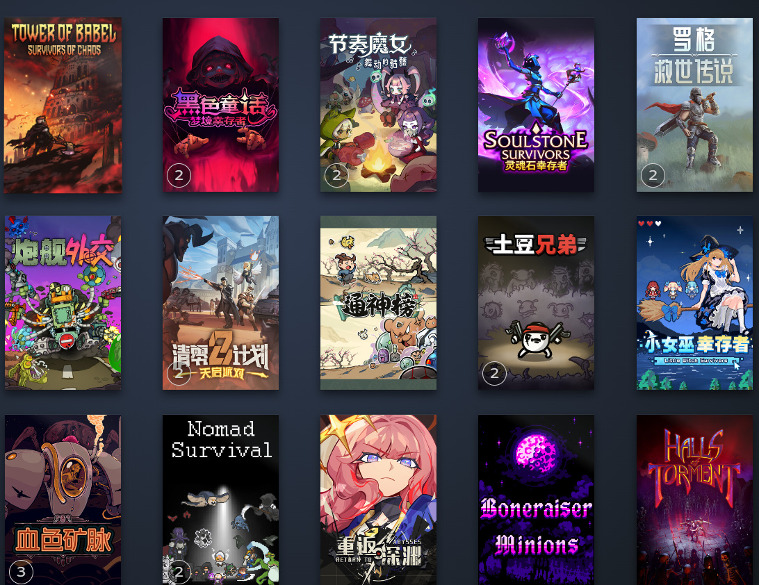 壮哉幸存者!我实在是太爱类幸存者玩法的游戏了,在这类型游戏上面估计买游戏都花了几百。库里面之前分类的都有三十多款,还有好多款玩了之后没有分类进去的。