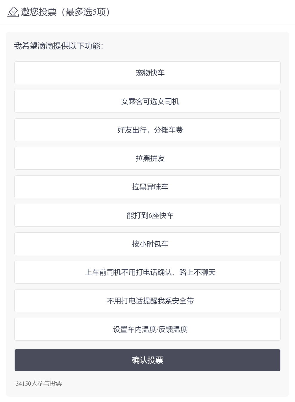 比如去年滴滴就發起過一個投票:您希望滴滴提供哪些功能?