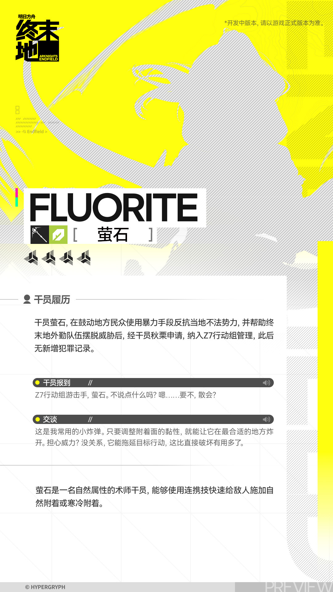 《明日方舟:終末地》「全面測試」“螢石”幹員演示