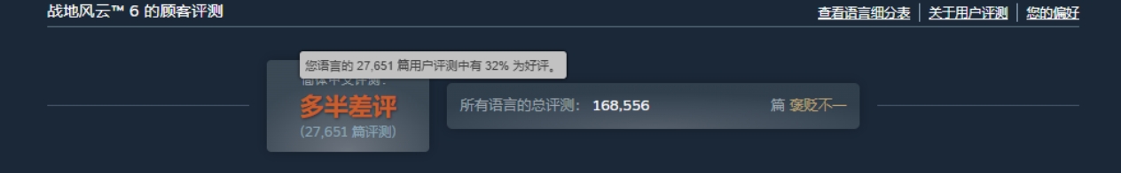 差評激增!《戰地6》好評率跌至系列倒數第二