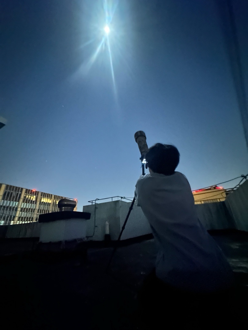 看着他不停地擺弄,就想起我小的時候,幾乎是一模一樣的場景,爸爸陪兒子拍月亮