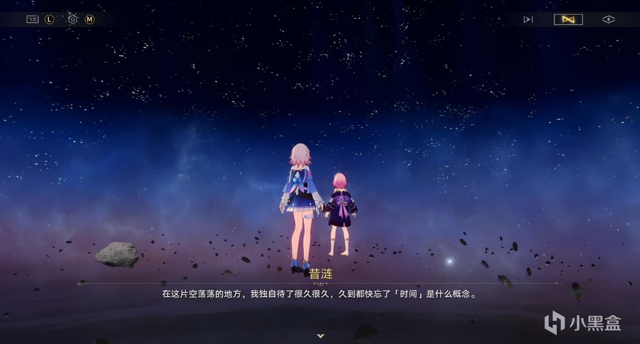 這裏仍以3.7版本爲例,在三月七剛抵達翁法羅斯時,曾在星球外的特殊空間中遇到過昔漣。現在我們已經知道了,昔漣就是德謬歌,被來古士剝離並驅逐到翁法羅斯之外,所以纔會遇到尚未進入翁法羅斯的三月七,而她提及的每天和想象中的朋友聊天,指的就是和翁法羅斯內部3000萬世的昔漣交換記憶的過程。