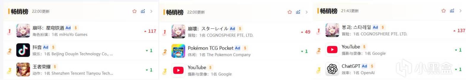 終於在11月5日中午,《崩壞:星穹鐵道》3.7版本正式上線。很快,《崩壞:星穹鐵道》就同時登頂了中國大陸、日本、韓國三個地區的iOS暢銷榜。連帶着3.7版本最新的兩條相關PV再次爆火,分別佔據了B站全站排行榜的第1名和第2名,昔漣角色PV也收穫了超過583萬的播放量。