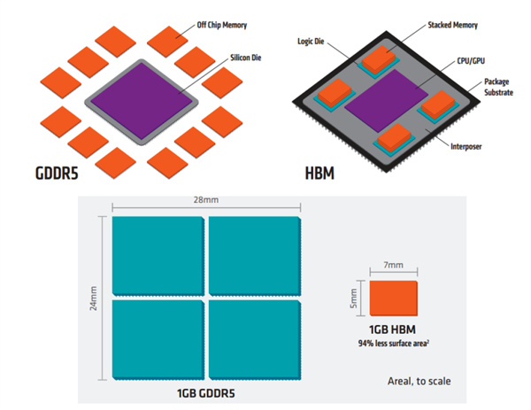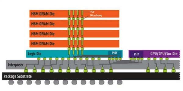 爲了搞定內存帶寬,研究人員研發出了基於DRAM技術的高端品類HBM。