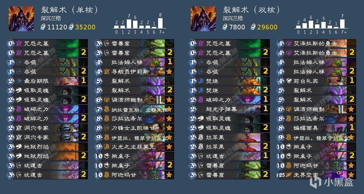 裂解术还是偏向于娱乐卡组,胜率不高,还有待开发优化。