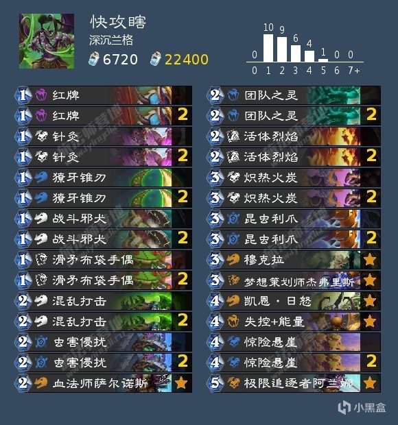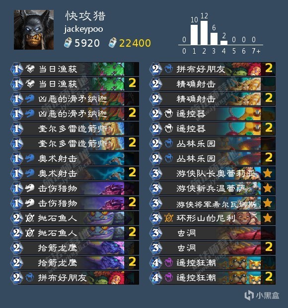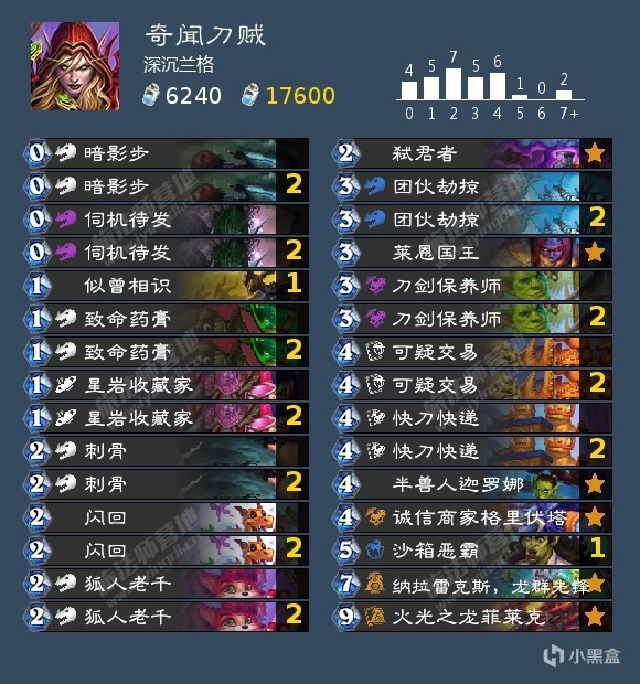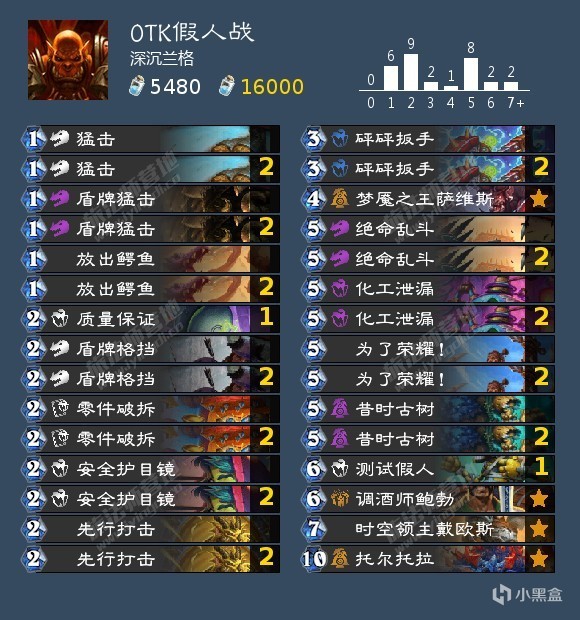 异军突起的快攻卡组,主要是好抓假人战,但是不太好打撕裂术以及DK,开局如果有团伙劫掠这局就稳了。