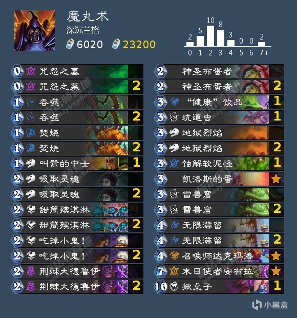 作为目前来说唯一登的上场面的法师卡组,这套强度是够的,但是胜率很难看,主要还是因为打不了一点快攻。