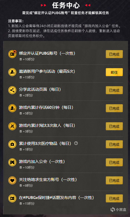 1. 對局任務需等戰績更新(喫雞後 5 分鐘生成),完成後記得回頁面查積分