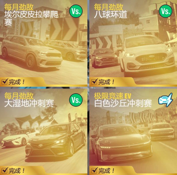 系列赛每次更新劲敌就要重新跑,一般劲敌车辆都是当季系列赛和季节赛的新车,跑劲敌要注意的是不要倒转和碰撞,平稳跑完就算完成。